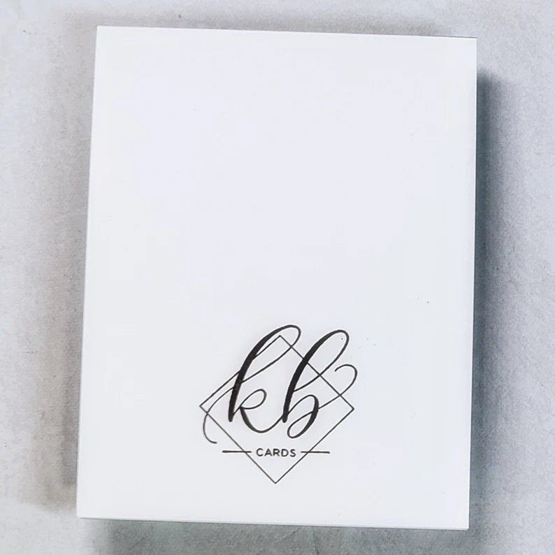 Inside of cards are left blank to provide room for you to write your personalized messages. White inserts are included with all colored or black card bases. Stamped sentiments can be requested upon checkout.