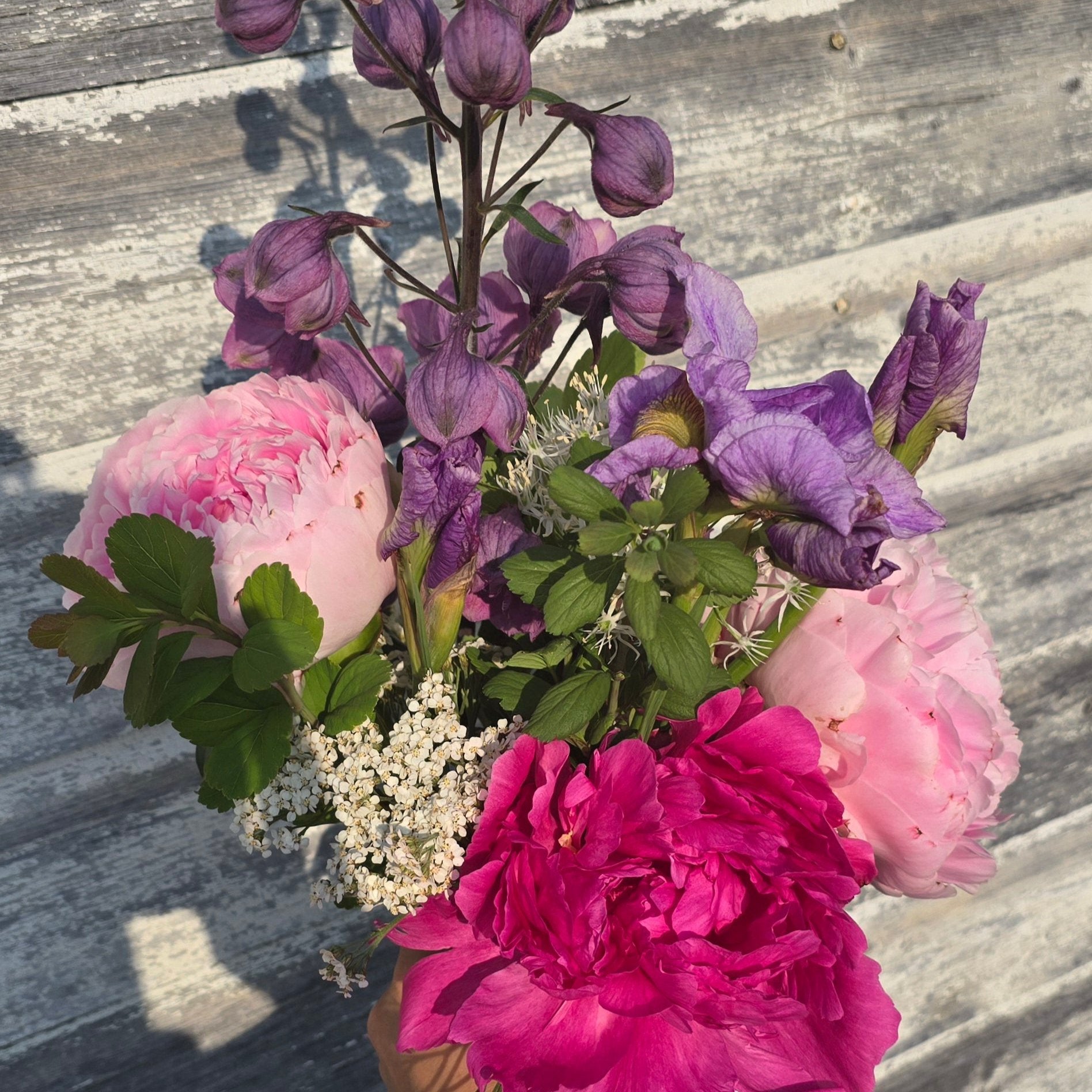 Five gorgeous bouquets to sample the best each season has to offer. Featuring tulips, peonies, and ranunculus in Spring, lillies and sunflowers in Summer, with lisianthus and dahlias to wrap up Fall. First bouquet typically ready in late May, at approximately three week intervals until the final delivery in late August. Due to the nature of flowers and their dependency on Mother Nature, dates will be weather dependent. Subscribers will be notified via text or email prior to each bouquet delivery.